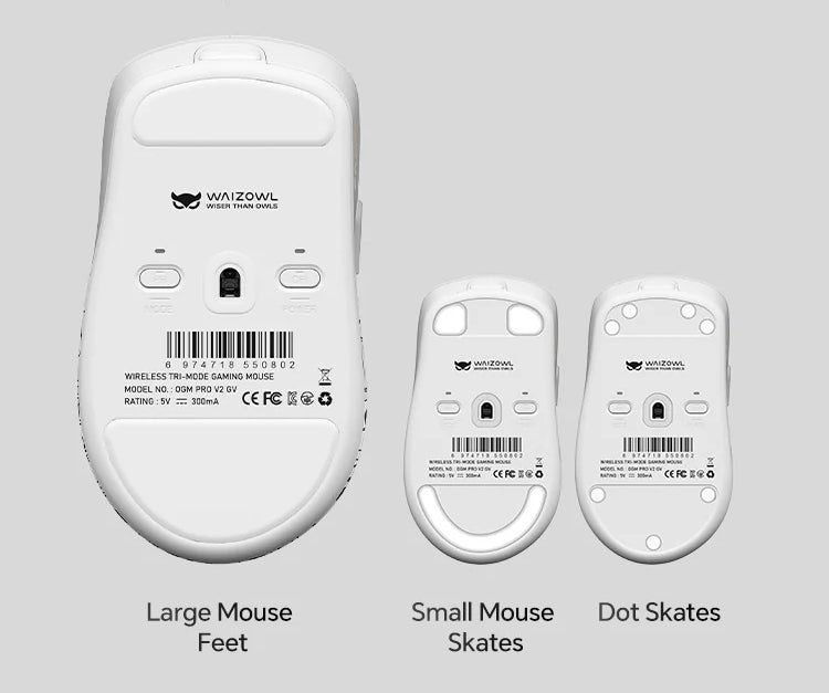 The OGM Pro V2 utilizes 100% PTFE Teflon mouse skates (Ice Edition), which province fast startup speed and quick gliding. The edges of the skates are chamfered to prevent subsidence, ensuring even contact with the mouse pad. It uses 3M removable adhesive, so the mouse feet can be replaced without leaving residue.